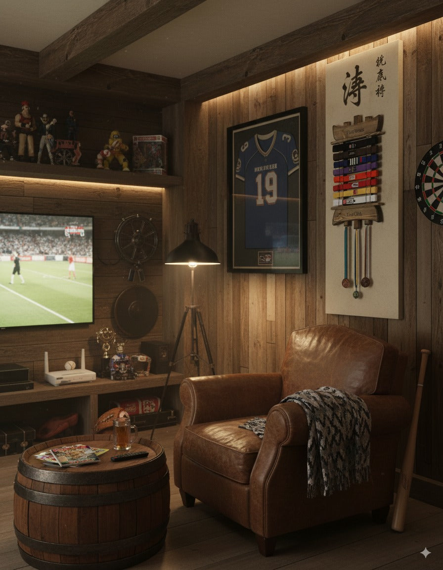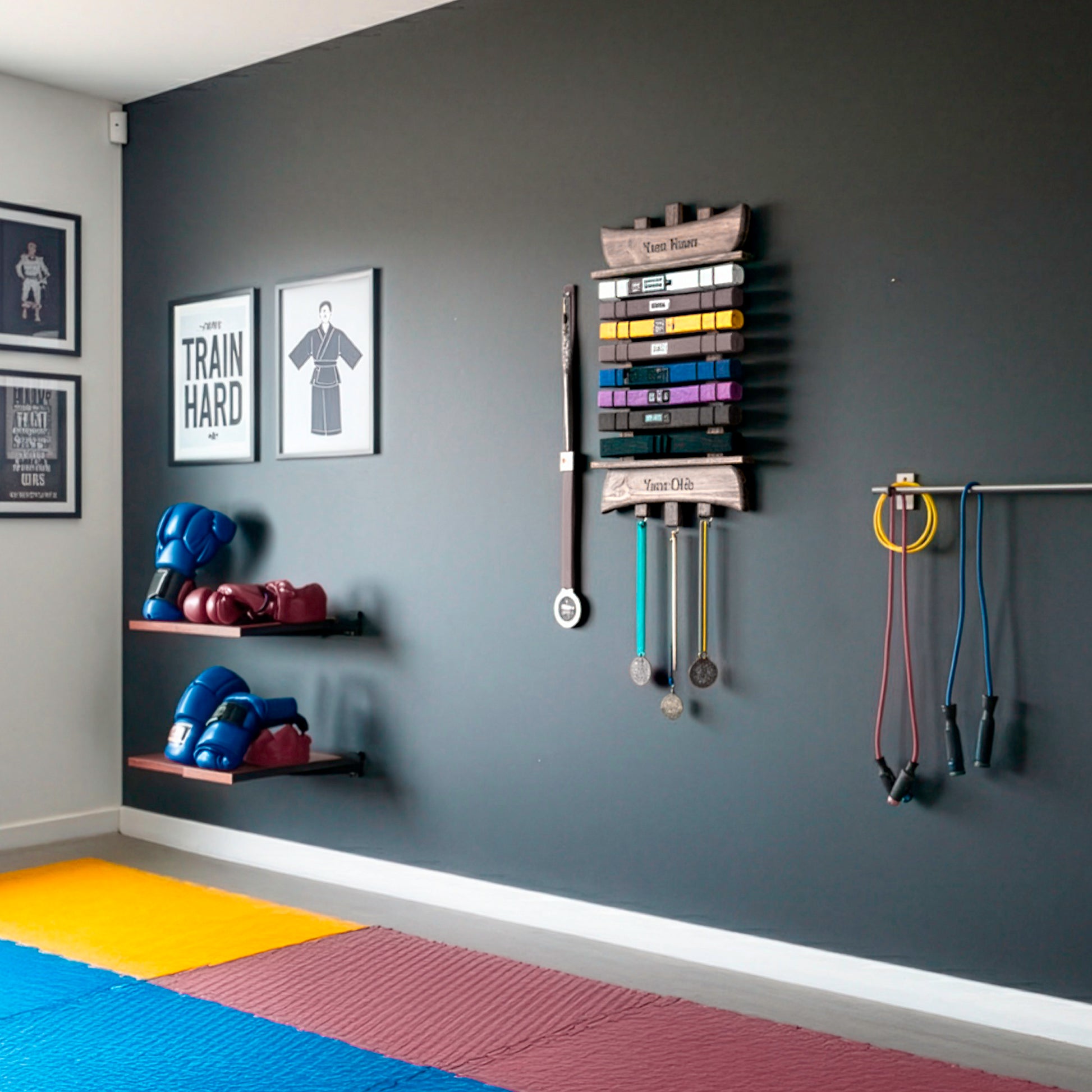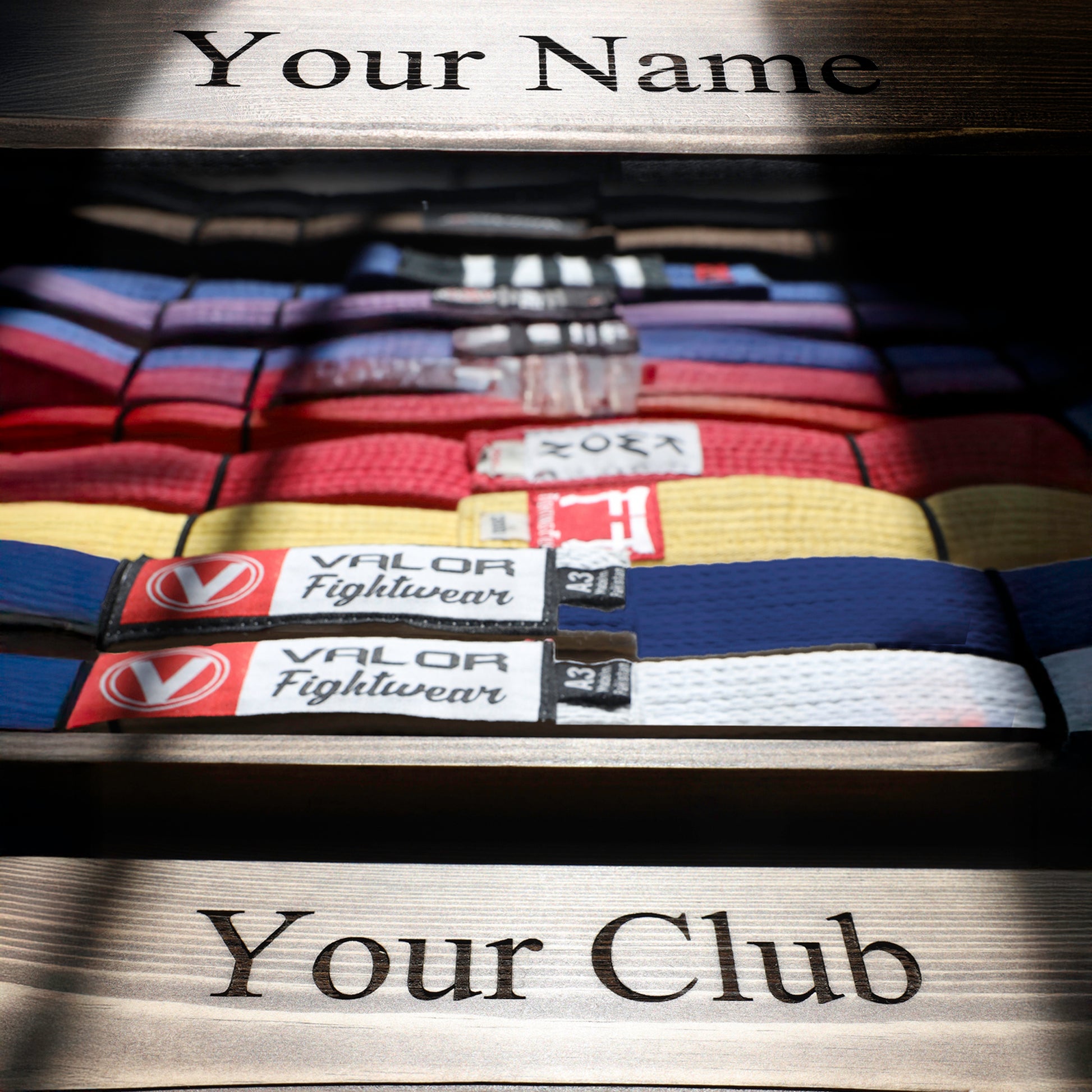 A bespoke display for your achievements, handcrafted in Ireland. Made using solid redwood with a capacity for up to 10 standard martial arts belts and various medals. Each ladder is uniquely engraved with your name and the name of your club.